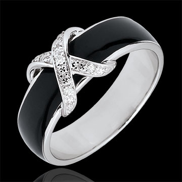 Inel Clar Obscur - Încrucişare lac negru şi Diamante - aur alb de 18K