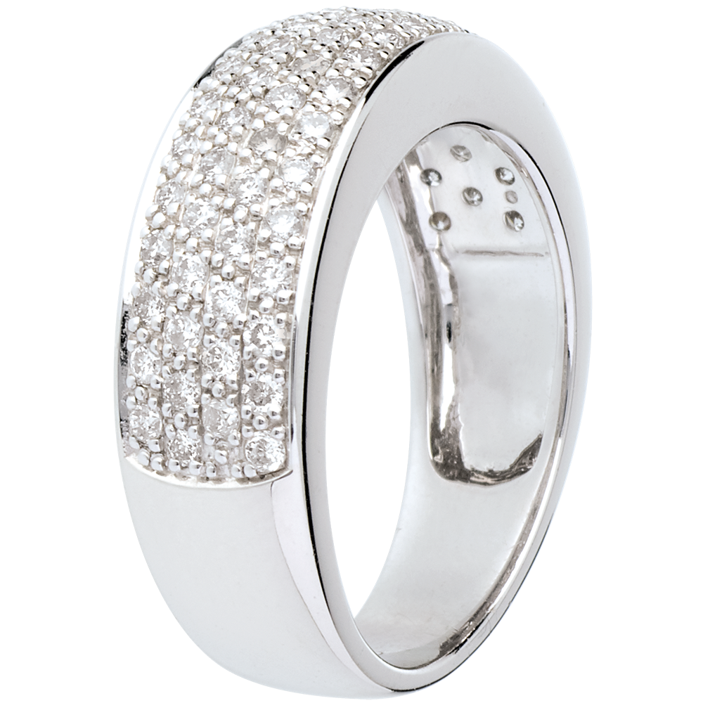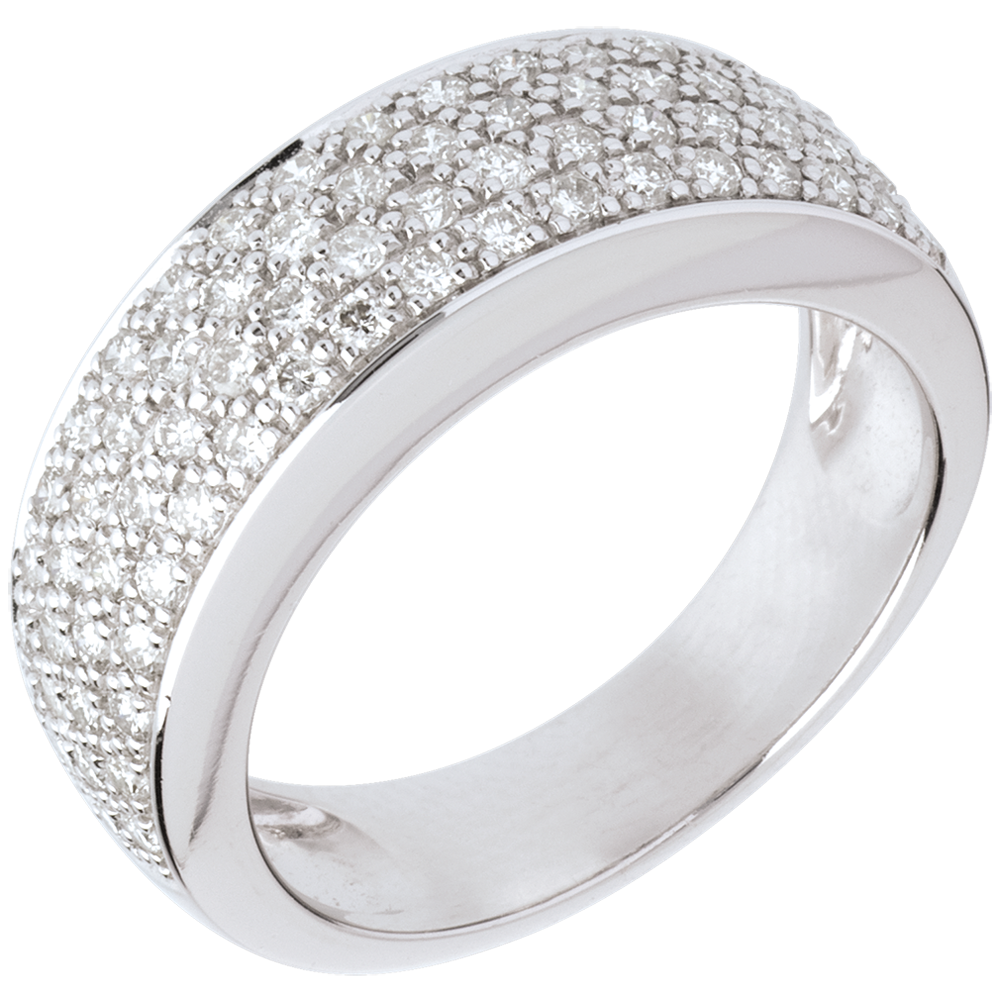 Strălucirea irizată a unui pavaj cu diamante precum stelele într-un inel de excepţie.