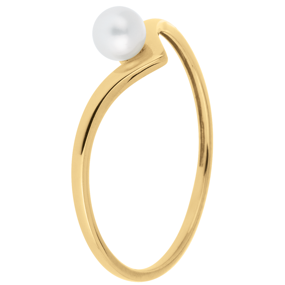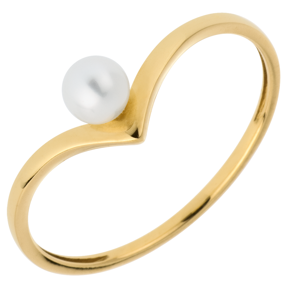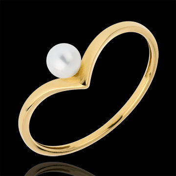 O delicată perlă de cultură îmbrăţişată de o montură cu pliuri din aur galben. Perlă de cultură de 3.5mm diametru