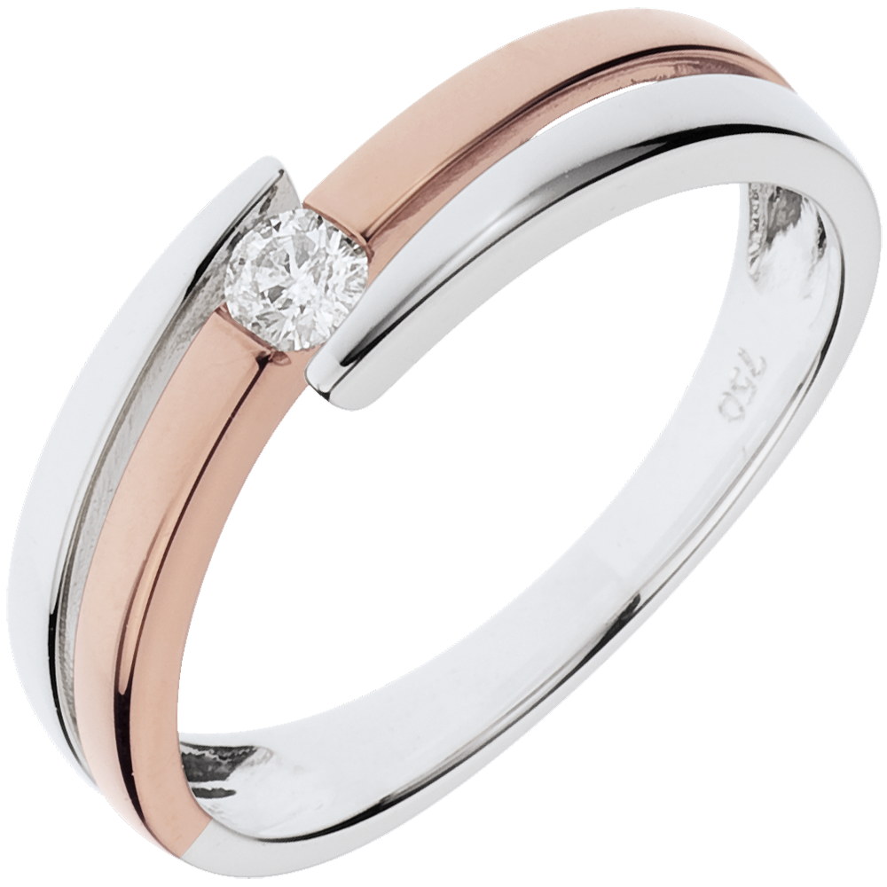 inele din aur alb şi aur roz se amuză de forma lor pentru a încadra în frumoasa lor simetrie un diamant solitaire