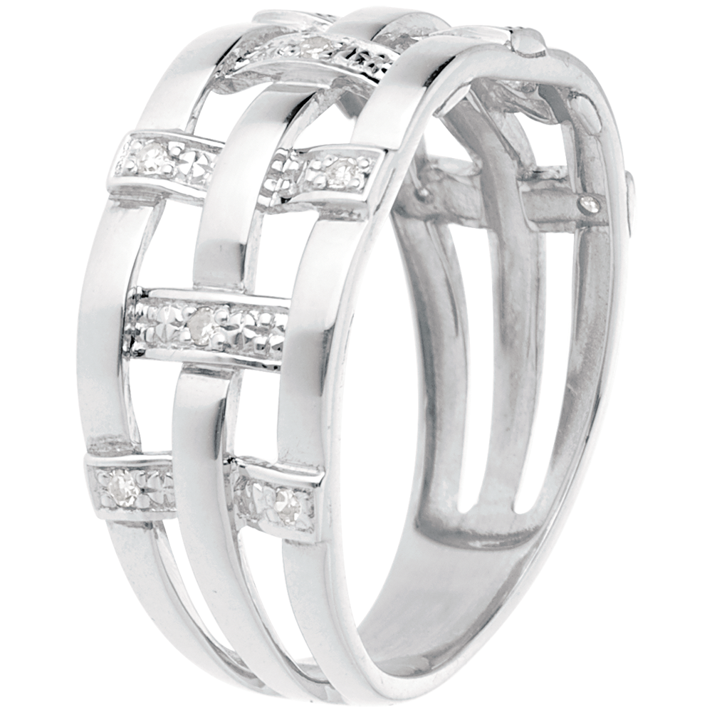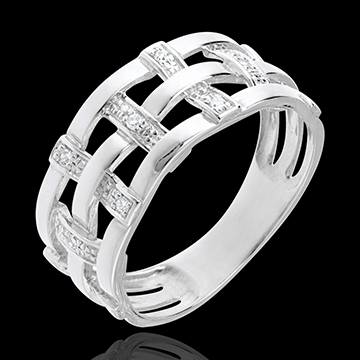 Inel cusătură din aur alb de 18K pavat cu diamante - 11 diamante