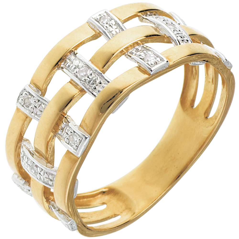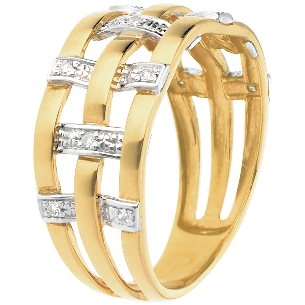 Inel cusătură din aur galben de 18K pavat cu diamante - 11 diamante