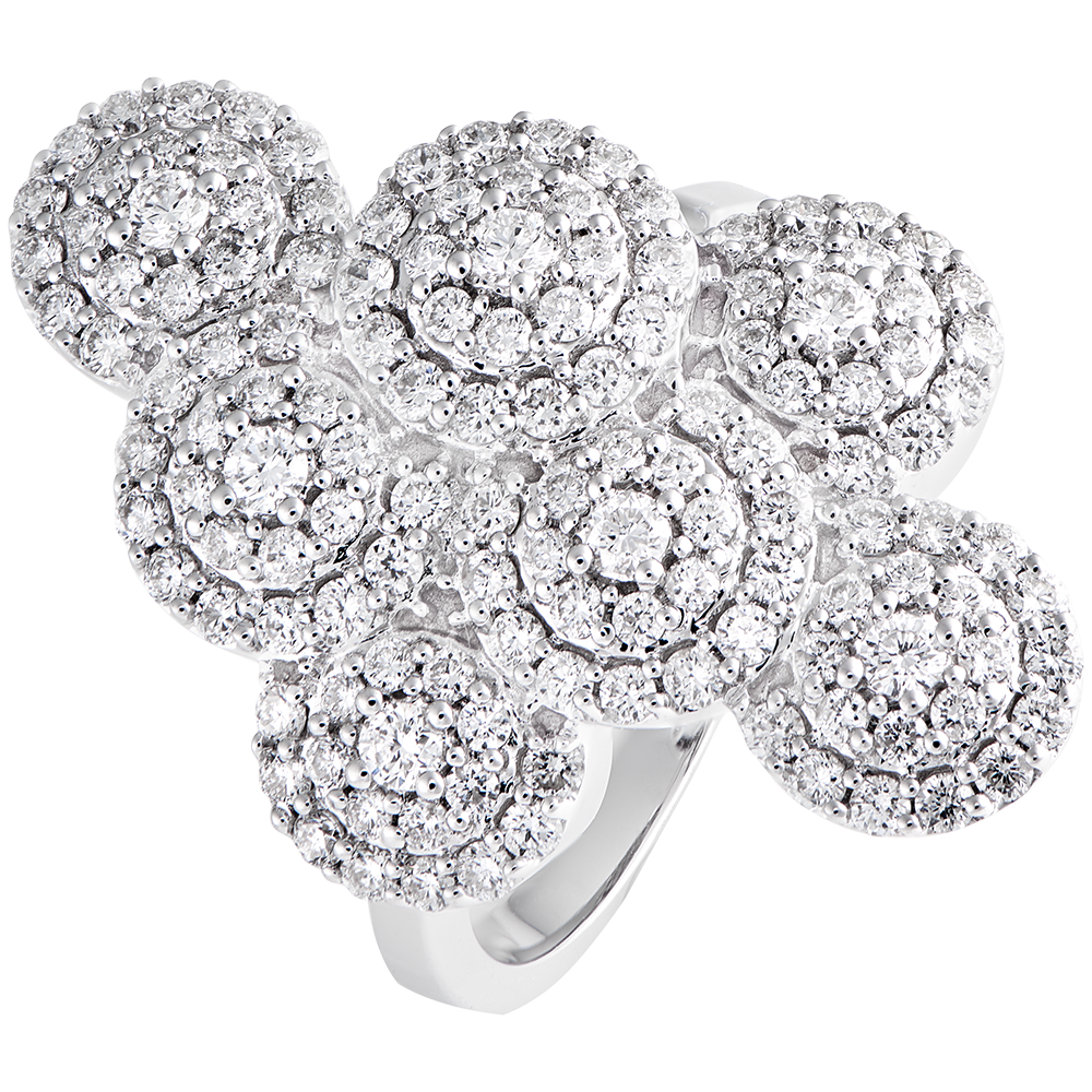 Un inel excepțional compus din diamante halo. Creație cu caracter puternic ce se înscrie în normele bijuteriei de lux.