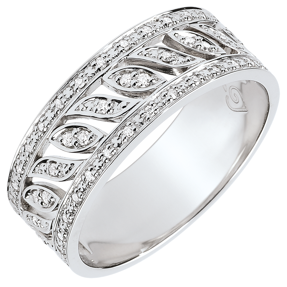 O montură bogat pavată cu 52 de diamante ce evocă o frescă romantică şi preţioasă.