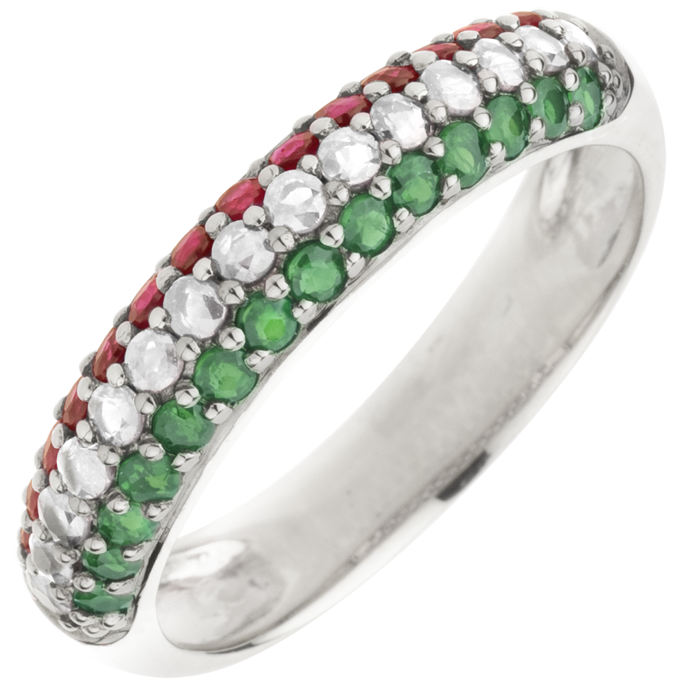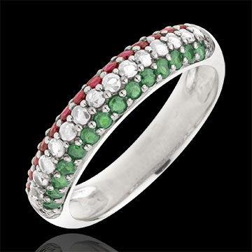 Inel Drapel italian - aur alb de 9K, diamante şi pietre preţioase