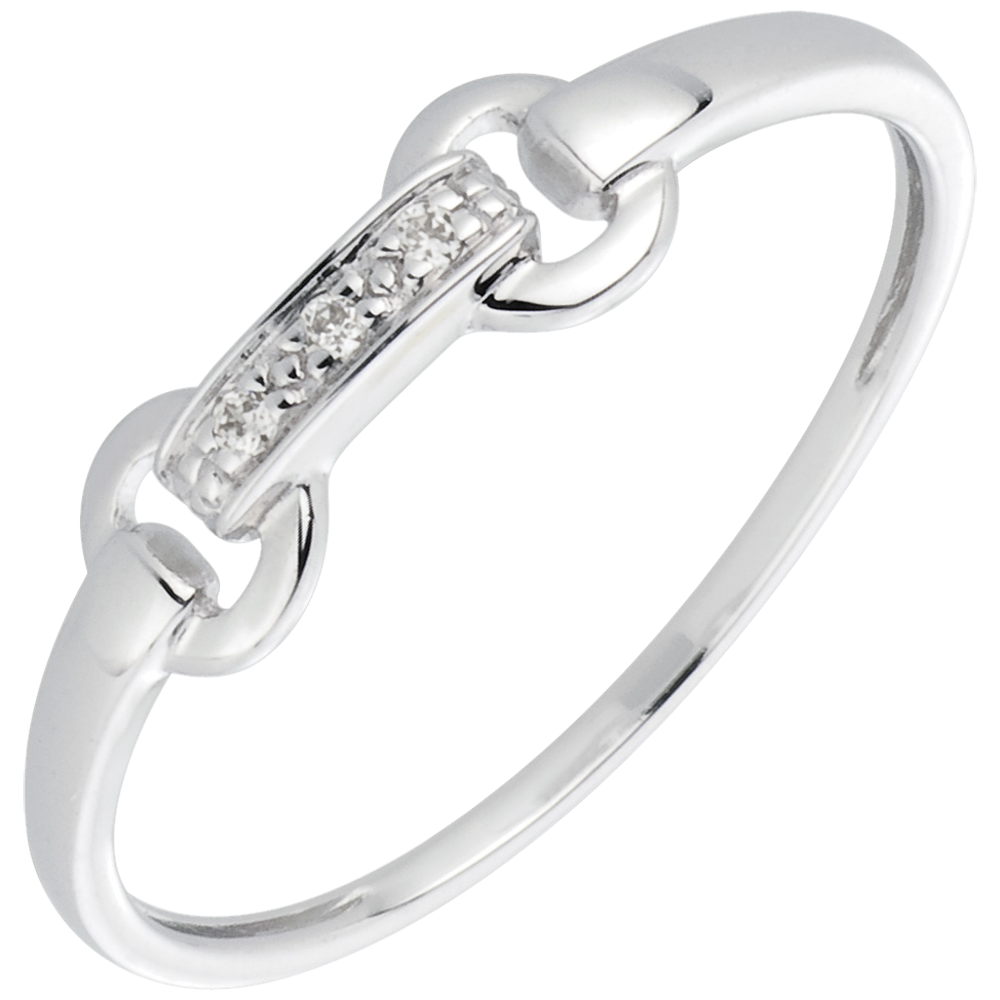o zăbală pavată cu diamante ataşată frâielor de aur alb pentru a forma un inel delicat.