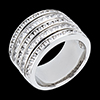 O montură stilizată compusă din cinci rânduri semi pavate ce alternează diamantele rotunde cu diamantele tăiate princess într-un inel excepţional.