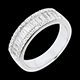 Trei rânduri de diamante, cu tăieturi briliante şi baghete pentru un efect structurat şi sofisticat.