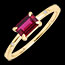 Un rubin sintetic dreptunghiular de 0,5 carate strălucește în centrul acestui inel, evidențiat de patru diamante sintetice delicate montate pe verigă din aur galben 9K.