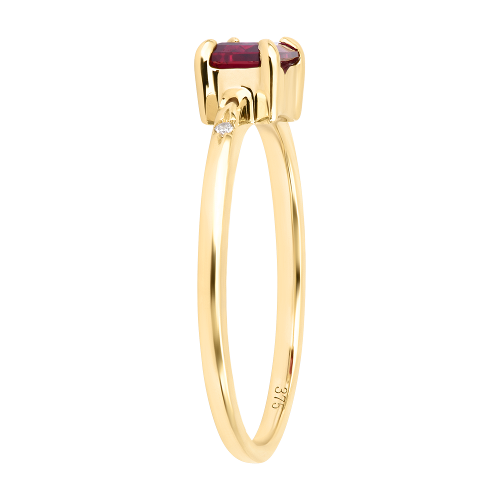 Inel Flambois – Aur galben 9K, rubin sintetic și diamante sintetice