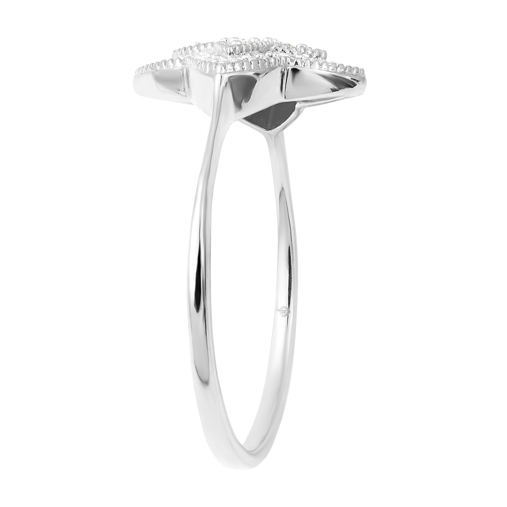 Acest inel aliază strălucirea diamantelor și un design inspirat de flori.