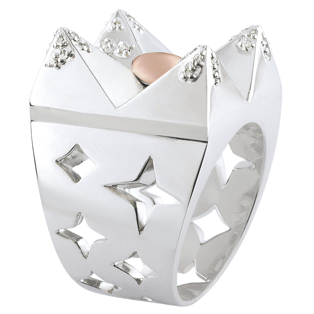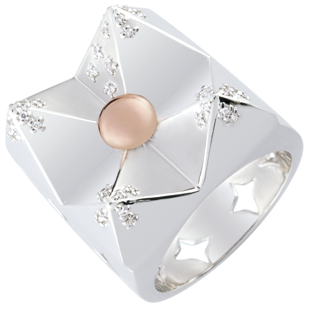 Inel Geneză - Munte de Cristal - aur alb şi aur roz de 9K