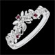 O alternanţă de frunze de aur alb strălucitoare şi de frunze cu lustru periat manual într-un inel romantic încrustat cu diamante şi rodolit.