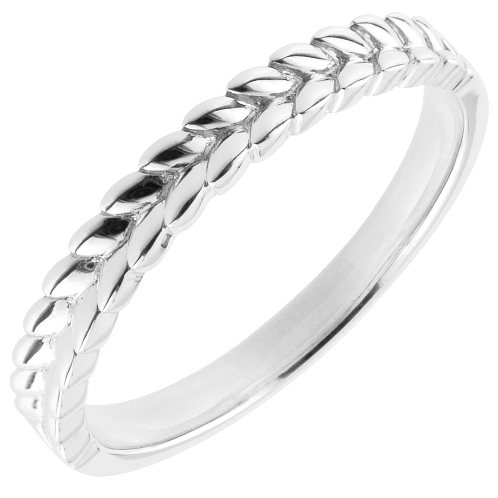Model de frunze de aur împletite pe jumătate din inel. Perfect pentru o verighetă originală şi rafinată sau drept inel ce îl putem asocia altor inele.