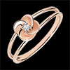 Petalele acestui trandafir delicat din aur roz sunt deschise spre o inimă de diamant pentru eternitate. Modern şi romantic, un cerc dublu de aur ţine preţioasa floare.