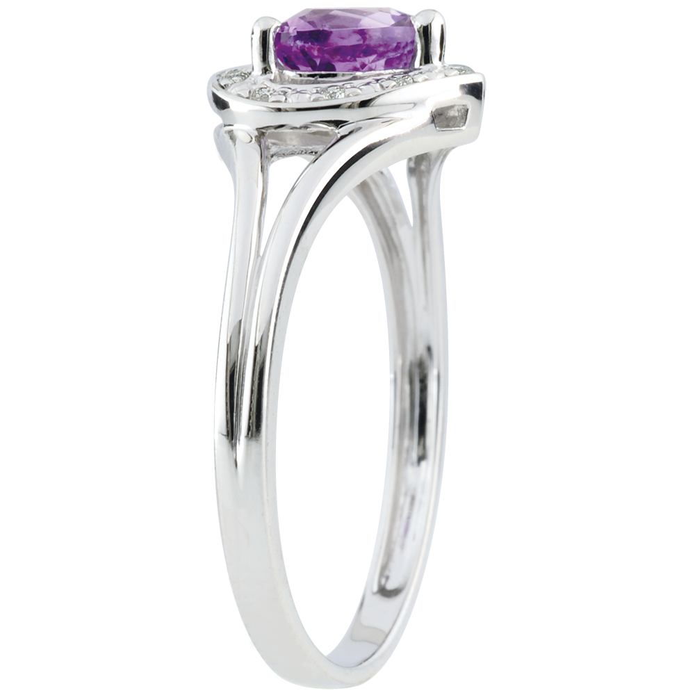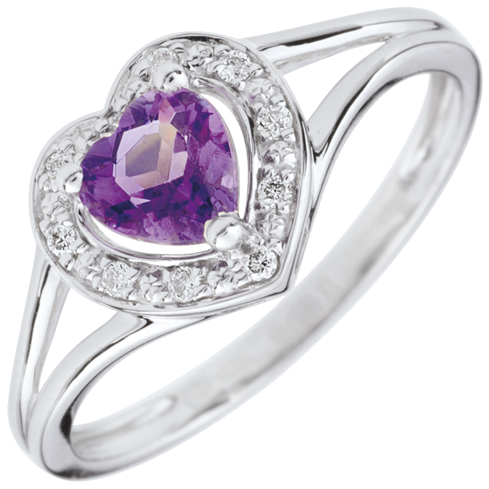 Inel Inimă Fermecată - ametist - aur alb de 9K