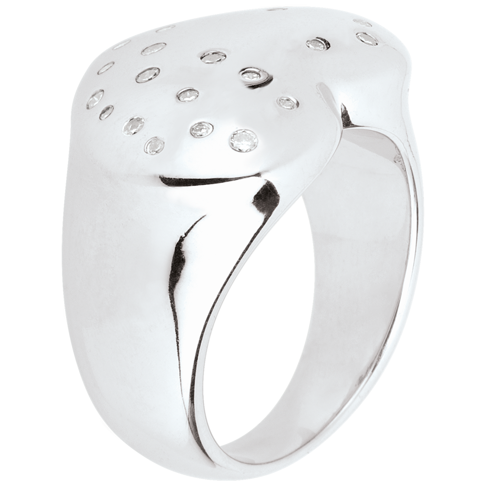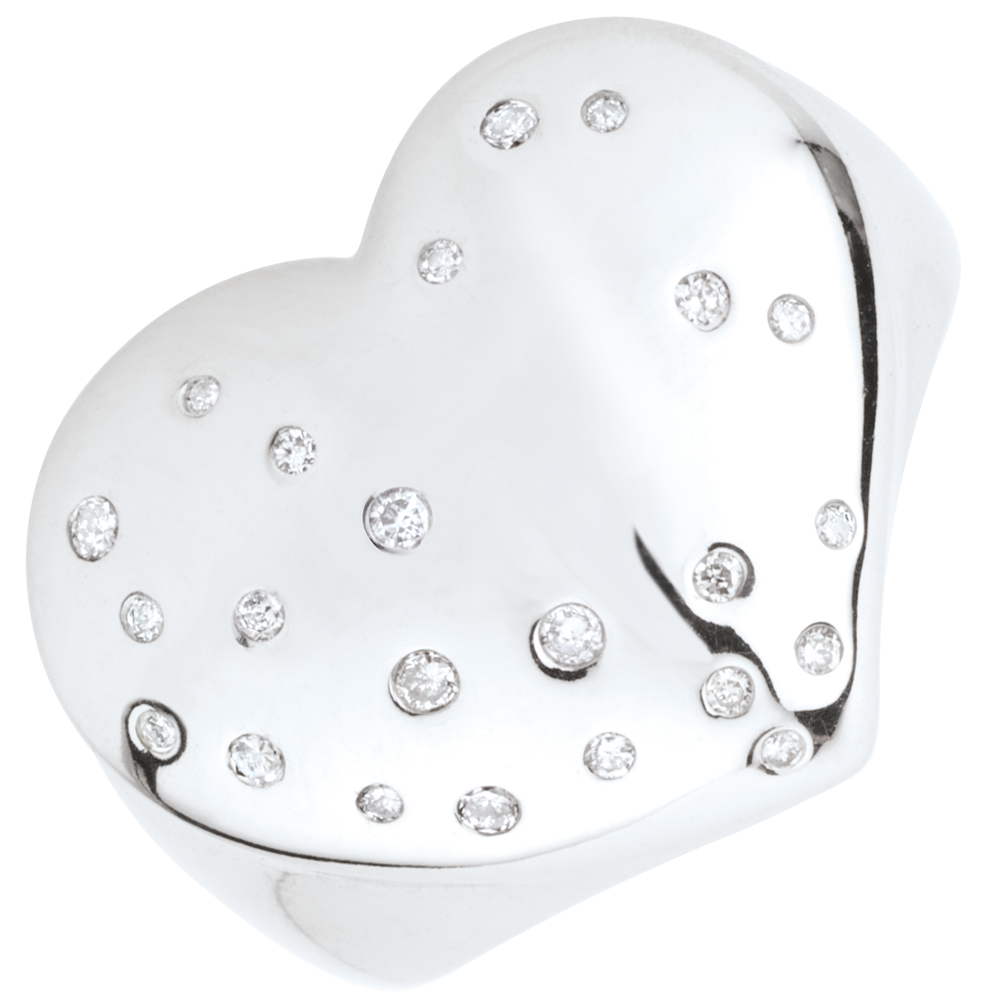 O inimă bombată de argint pătată de diamante vă va orna degetul cu feminitate.…