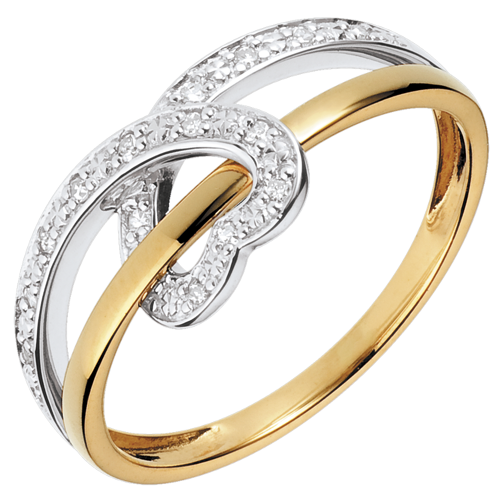 Inel Inimă Panglică două nuanţe - aur alb şi aur galben de 18K