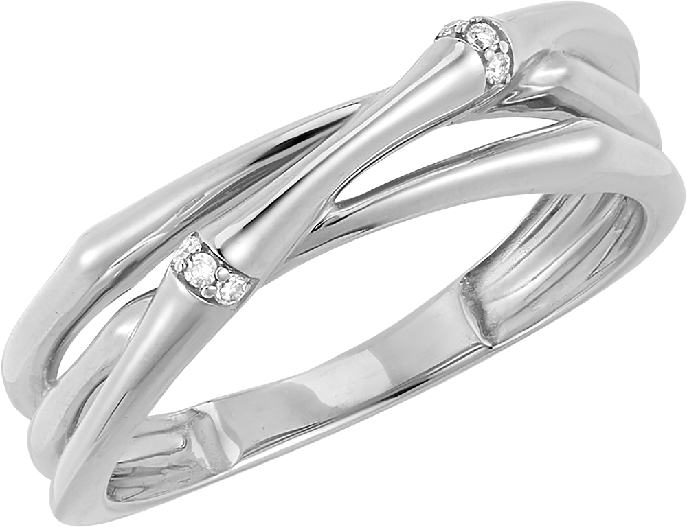 Inel Junglă Sacră 2 rânduri împletite multiple diamante - aur alb 9 carate