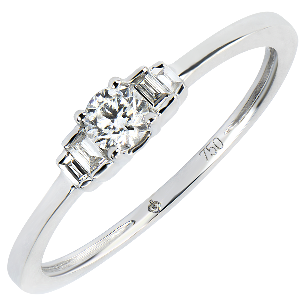 Un diamant Solitaire înconjurat de 4 diamante setate canal într-o montură ce îmbină graţia şi delicateţea.