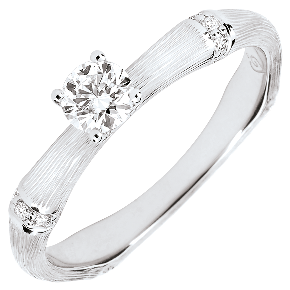O tulpină de bambus suplă şi totuşi solidă se metamorfozează într-un inel de logodnă etern. Nodurile bambusului sunt încrustate cu diamante în aurul alb cu lustru periat pentru a sublinia diamantul solitaire. Finisarea mată realizată manual îi oferă un aspect natural de un realism surprinzător.