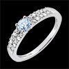Pe un inel de aur alb încrustat cu două şiruri de briliante strălucitoare domină un acvamarin central. Puritate şi simplitate pentru această centură de diamante.