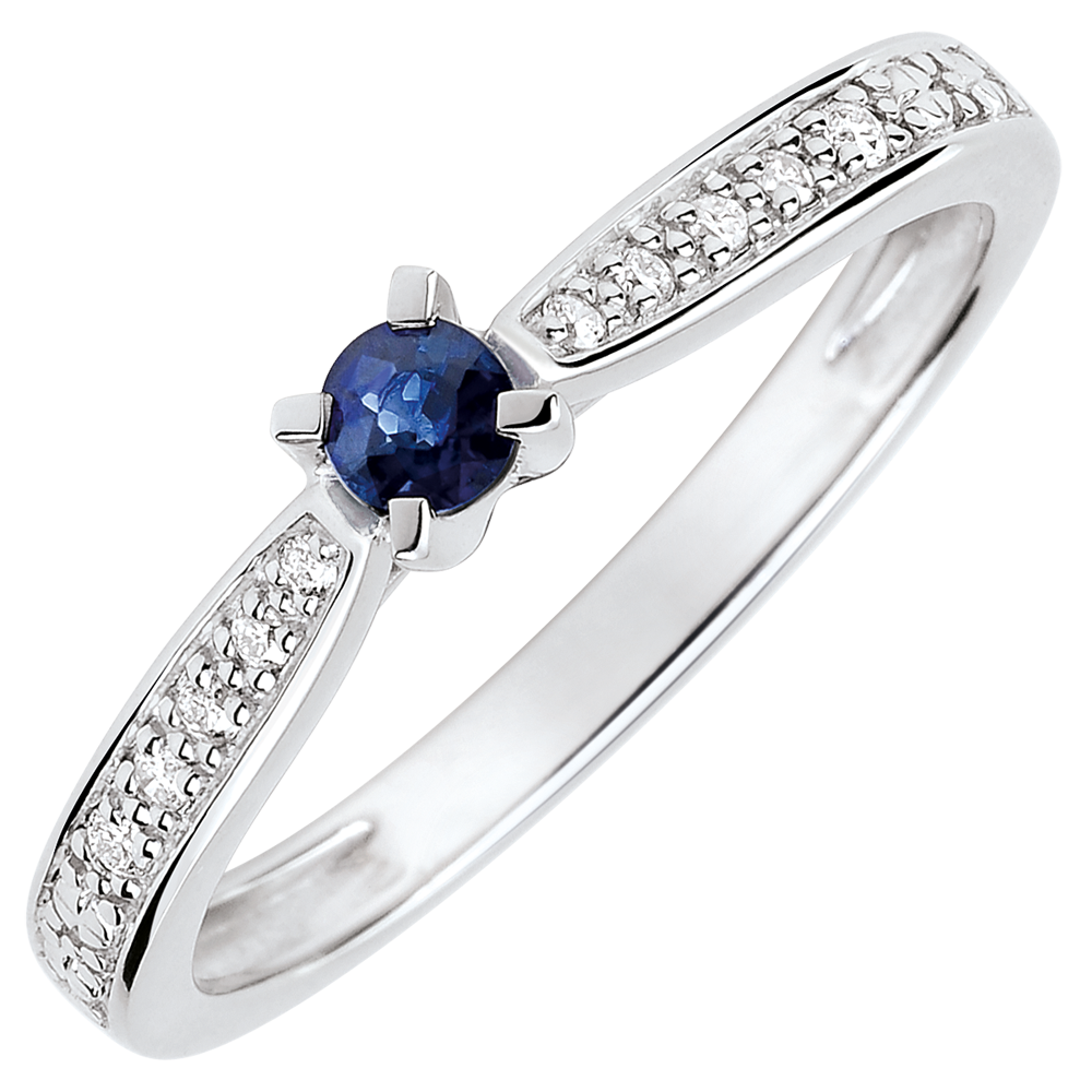 Inel de logodnă solitaire Garlane 4 gheruţe - safir 0.14 carate şi diamante - aur alb de 18K