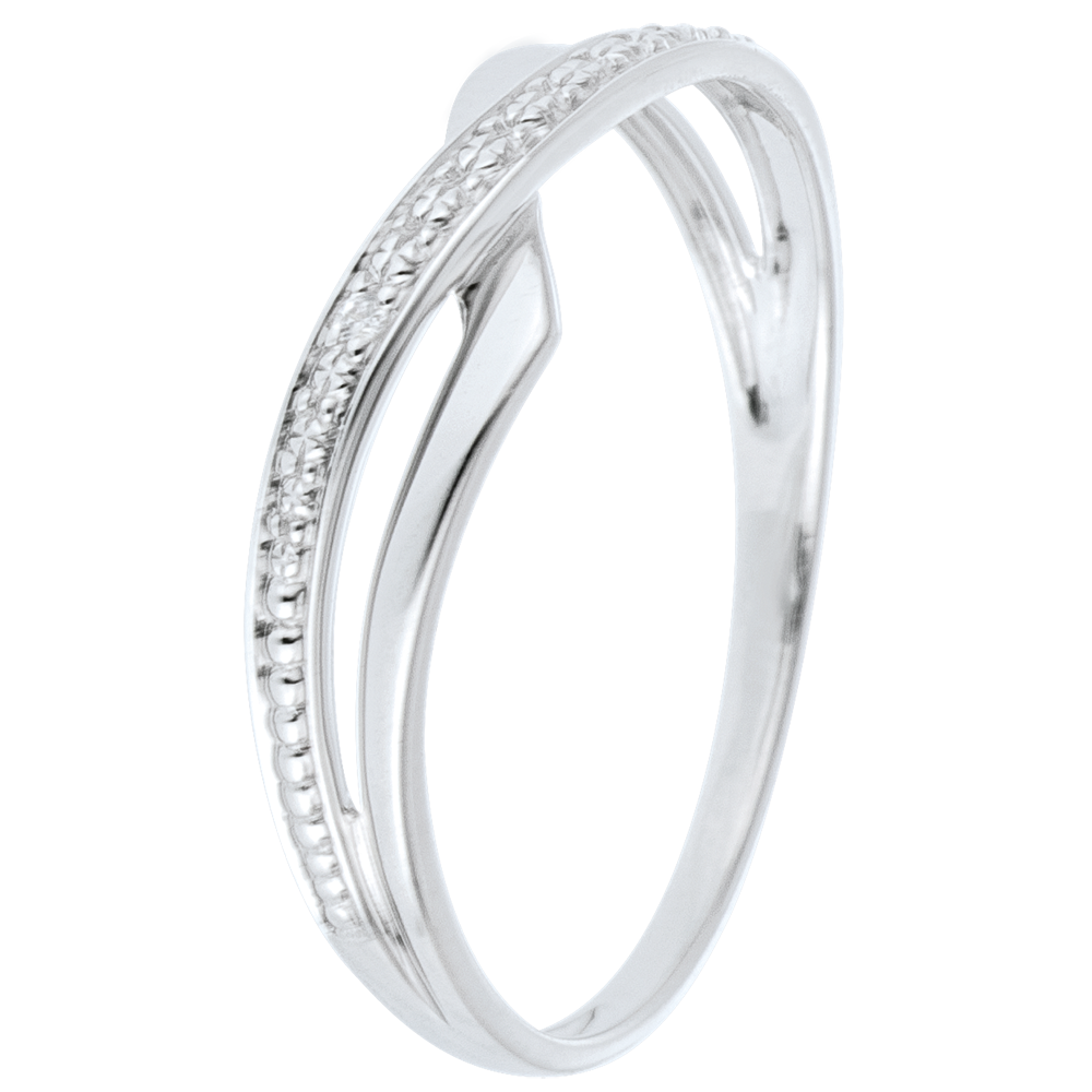 Silueta unei păsări din aur purtată de un val de aur alb încrustat cu un diamant.