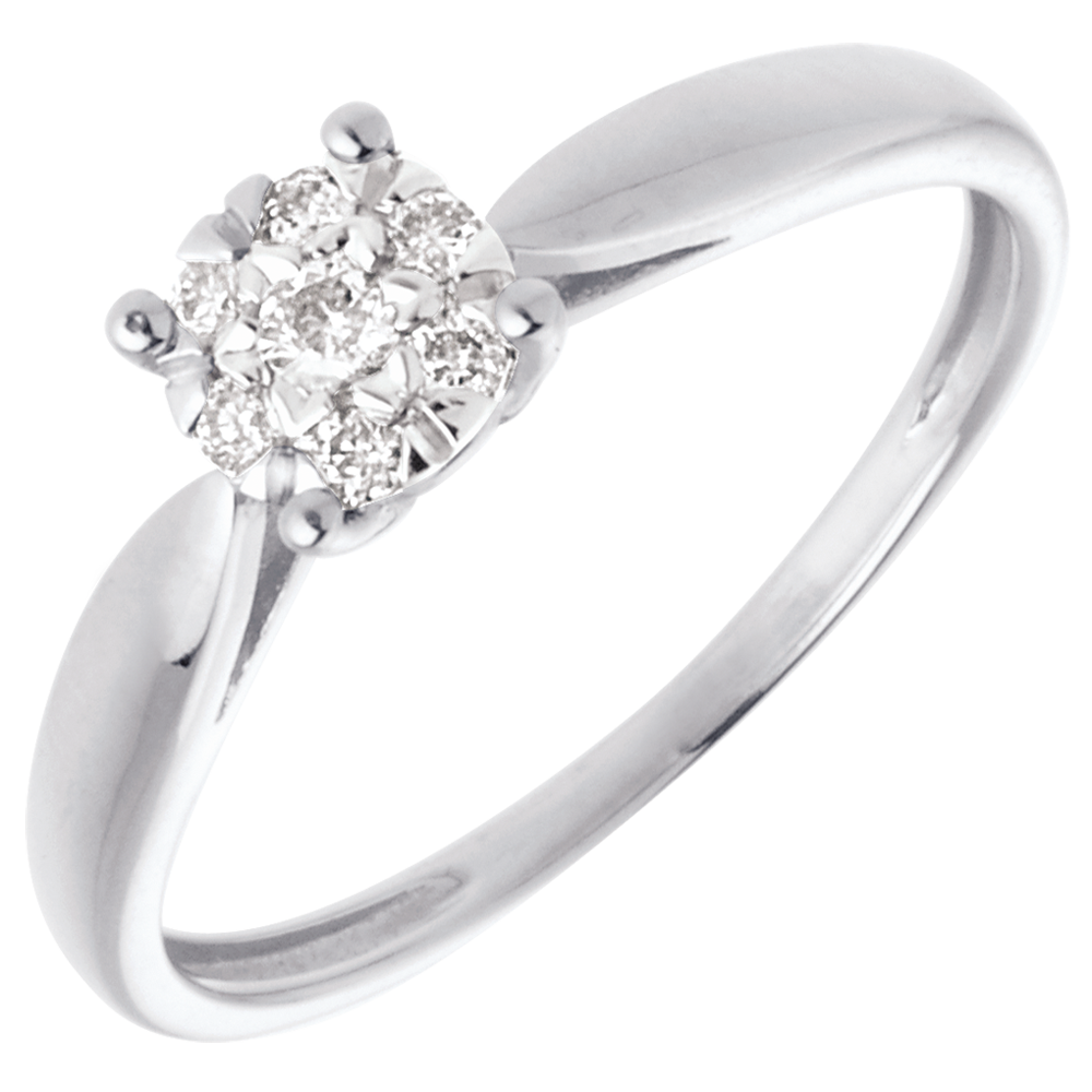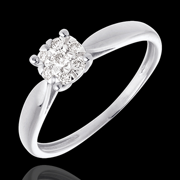 Inel mlădiere din aur alb de 18K sferă pavat - 7 diamante - 0.12 carate