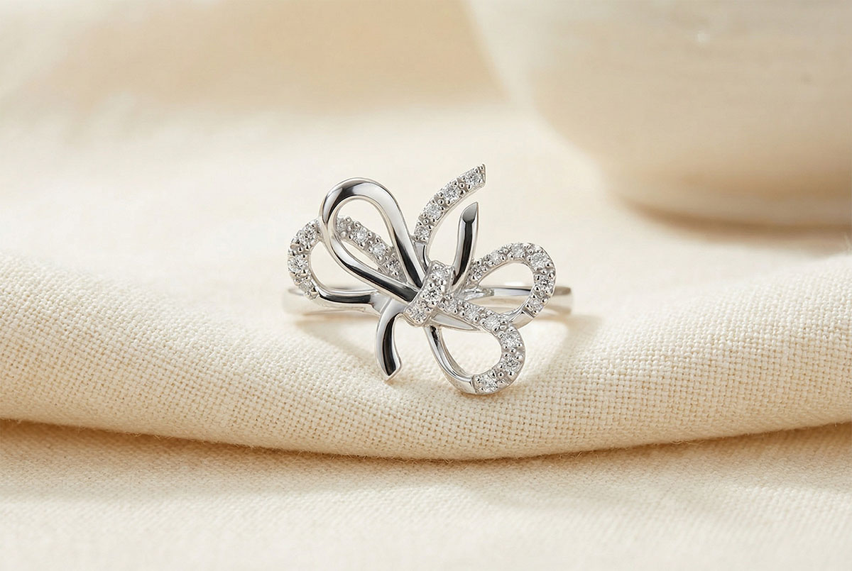 Un nod fantezie şi diafan stă suspendat pe mâna dumneavoastră şi străluceşte în argint şi diamante.