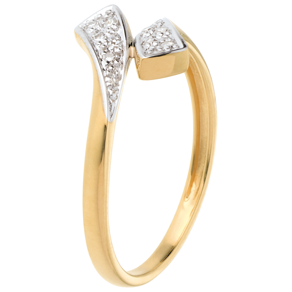 Inel Panglică din aur galben de 18K pavat - 10 diamante
