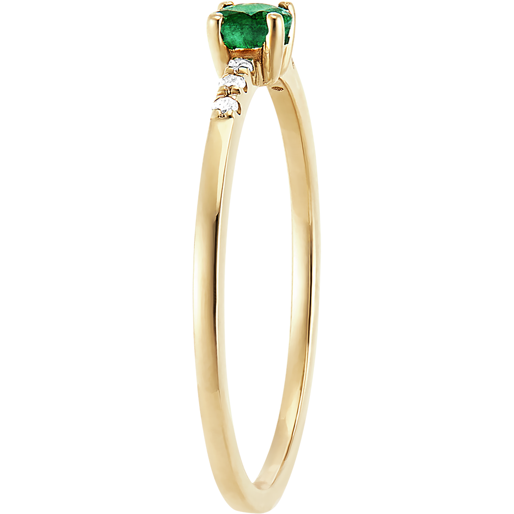 Gloria și esența unui smarald fixat în deplină sobrietate pe un inel din aur galben împodobit cu 6 diamante. O bijuterie clasică și atemporală în același timp pentru o notă de culoare.