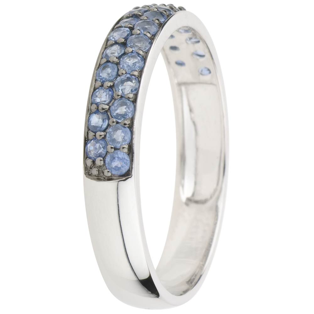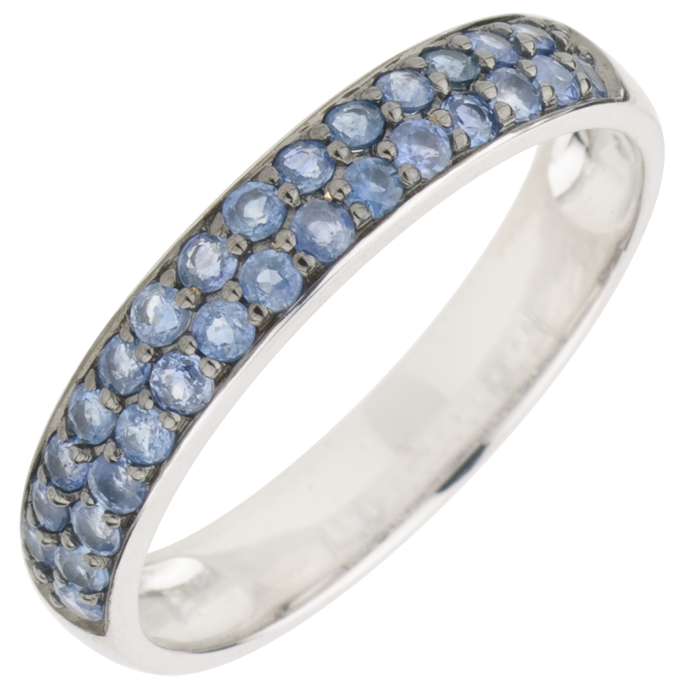 Inel Pasăre din Paradis - două şiruri - aur alb de 9K şi safir albastru