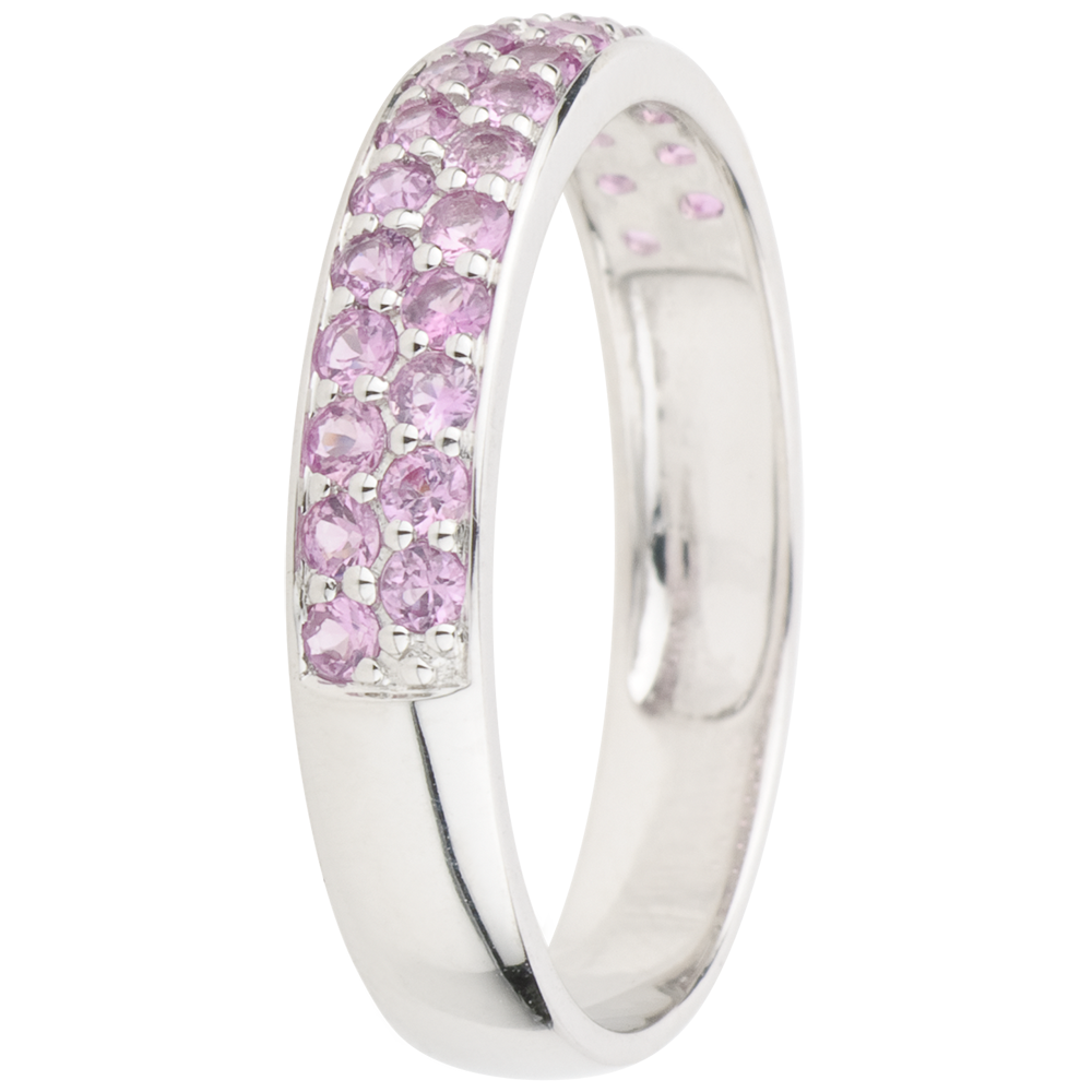 Inel Pasăre din Paradis - două şiruri - aur alb de 9K şi safir roz