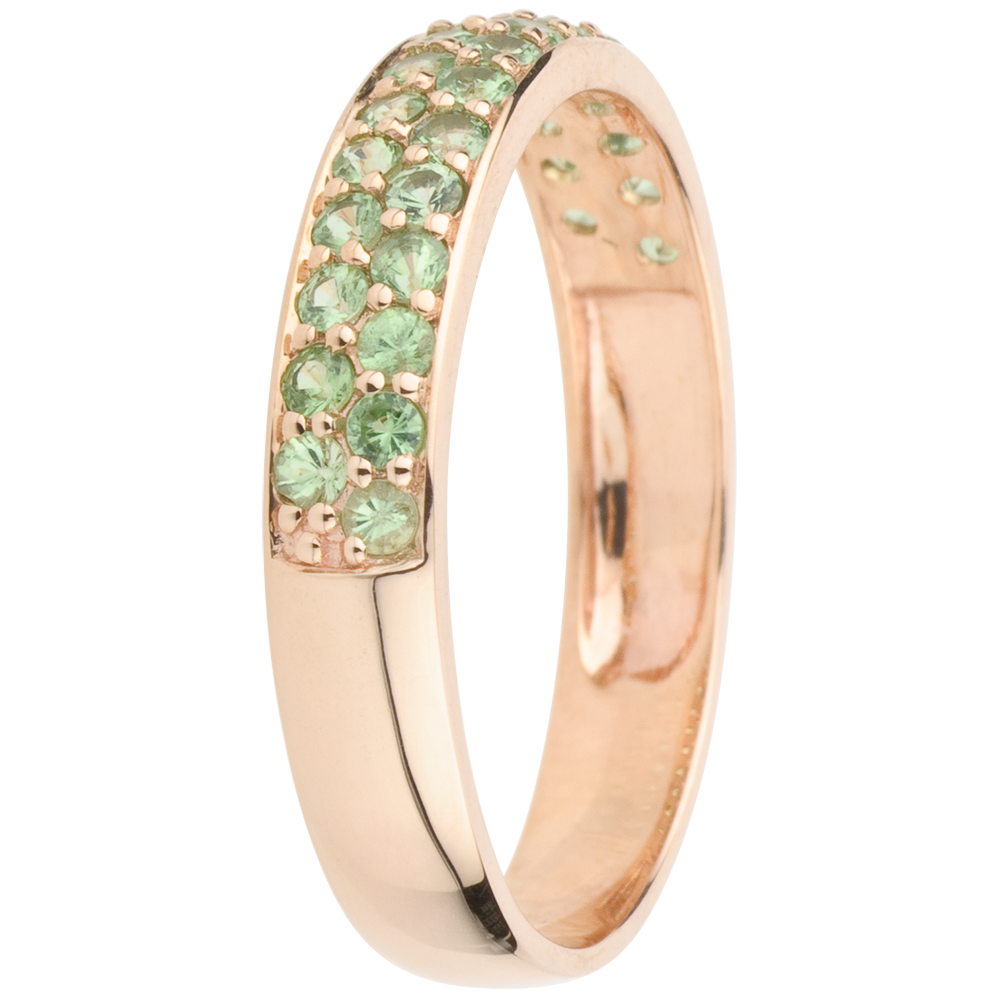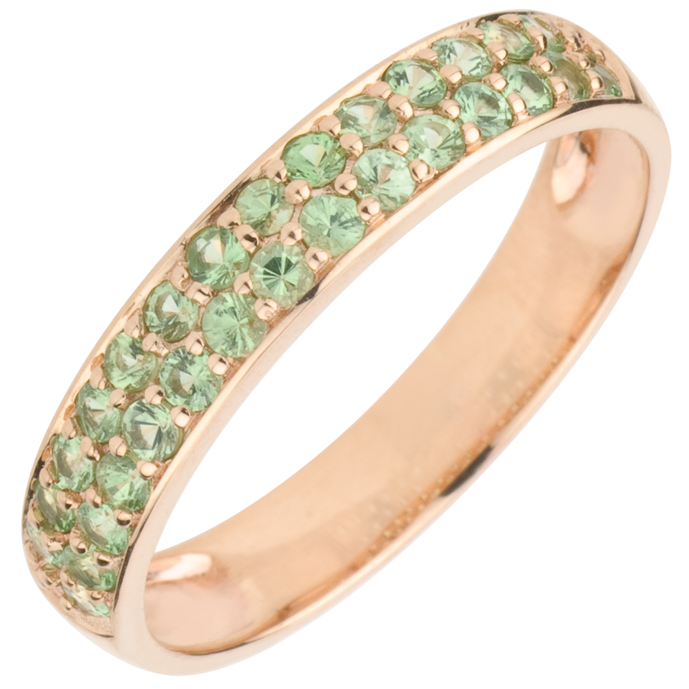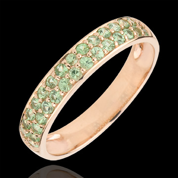 Inel Pasăre din Paradis - două şiruri - aur roz de 9K şi tsavorit