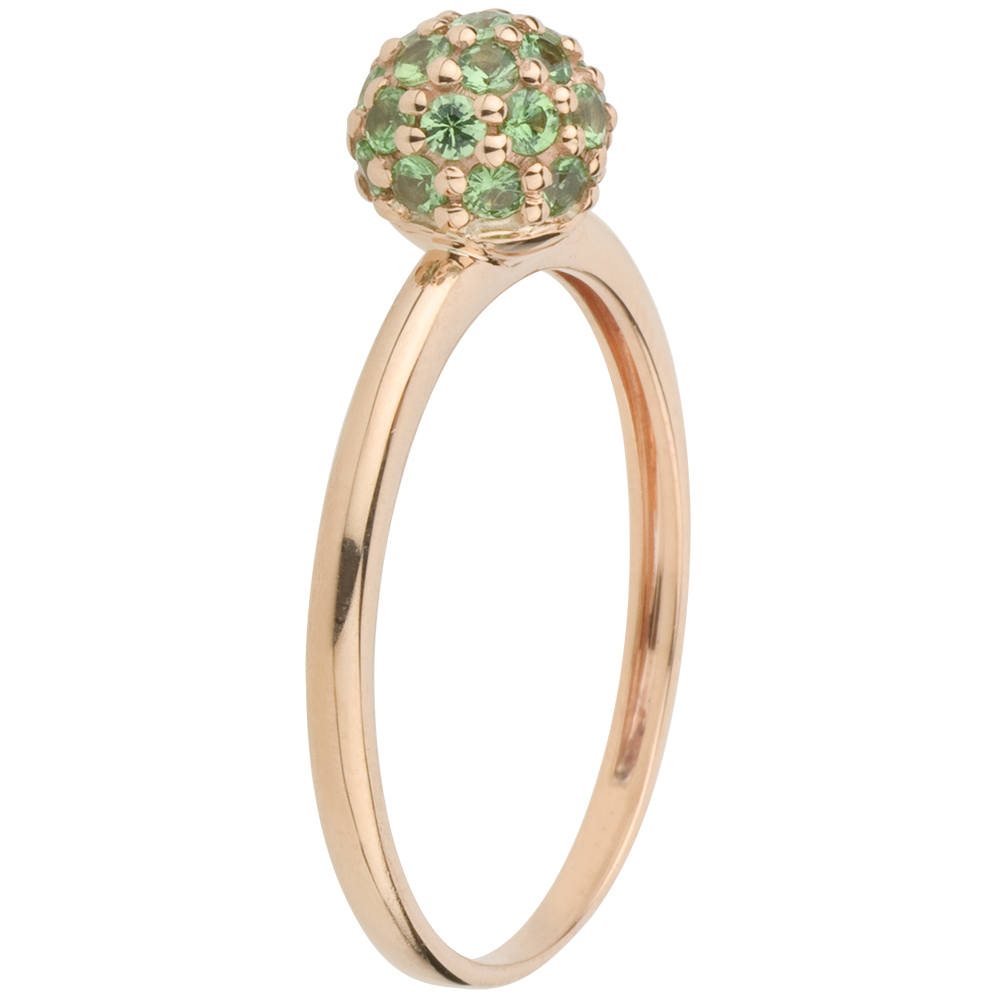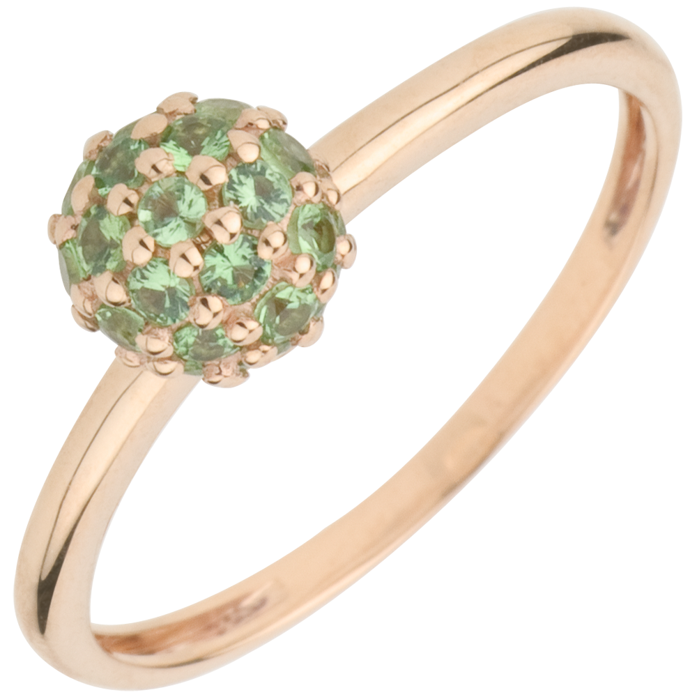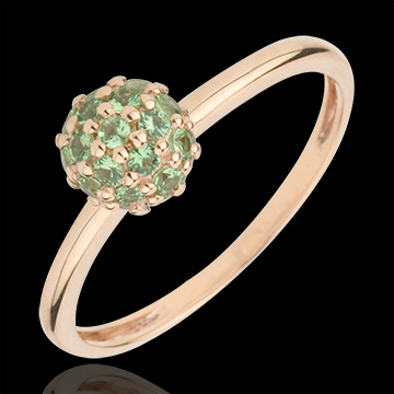 Inel Pasăre din Paradis - sferă - aur roz de 9K şi tsavorit