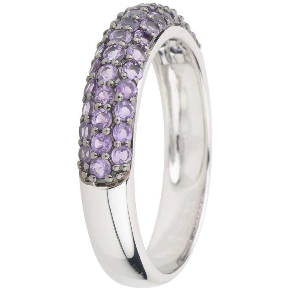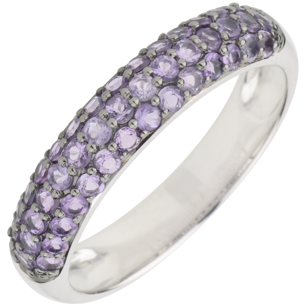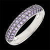 Inel Pasăre din Paradis - trei şiruri - aur alb de 9K şi ametist