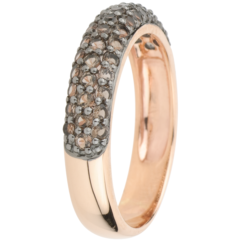 Inel Pasăre din Paradis - trei şiruri - aur roz de 9K şi quartz fumuriu