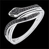 Acest inel şarpe din aur alb cu forme sinuoase şi ademenitoare este finisat cu diamante negre pentru un look şic şi modern.