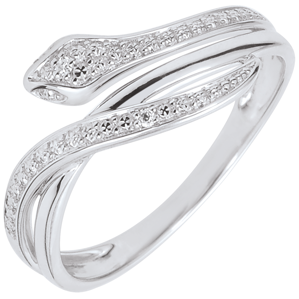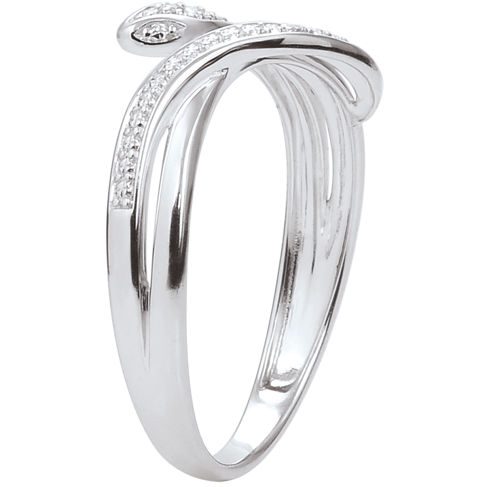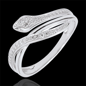 Acest inel şarpe din aur alb cu forme sinuoase şi ademenitoare este finisat cu diamante pentru un look şic şi modern.