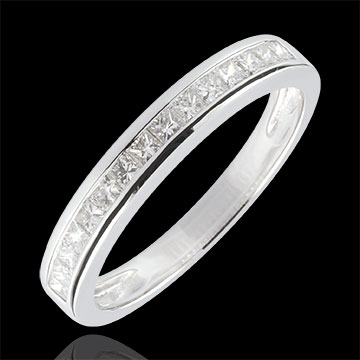 Cincisprezece diamante tăiate princess defilează pe această verighetă oferindu-i o eleganţă atemporală.