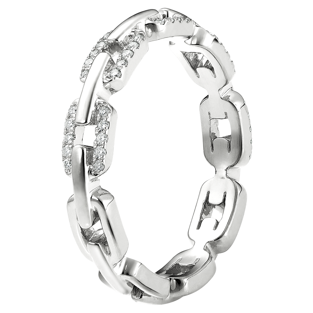 Generoase zale cubaneze încrustate cu diamante, transformă acest inel din aur alb într-un clasic revizuit.
