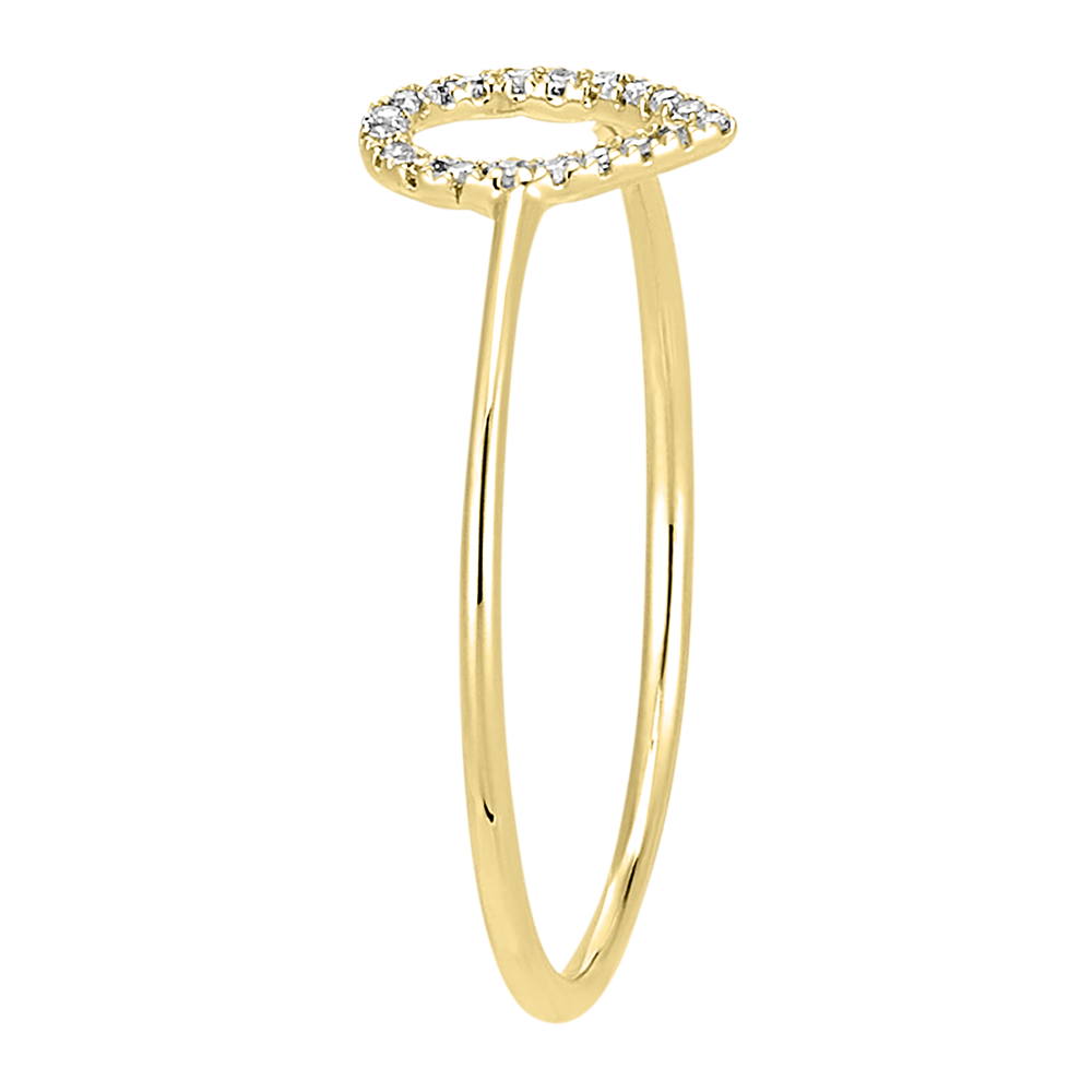 O picătură pavată delicat cu diamante, fixată pe un inel din aur galben, pentru un model pur, înclinat spre elemente și emoții.