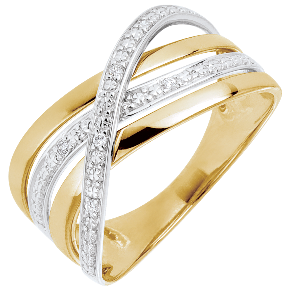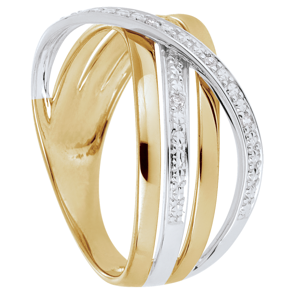 Inel Saturn Cuadri - aur alb şi aur galben de 9K