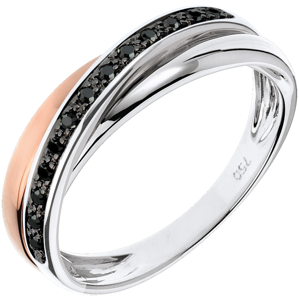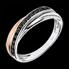 O uniune echilibrată în trei nuanţe: alb, roz şi negru, subliniată de un pavaj de diamante încrustate în aurul alb.