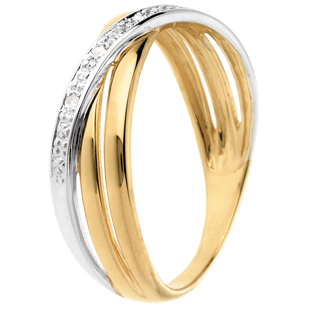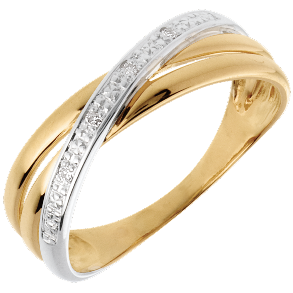 Inel Saturn Duo variantă - 4 diamante - aur alb şi aur galben de 18K