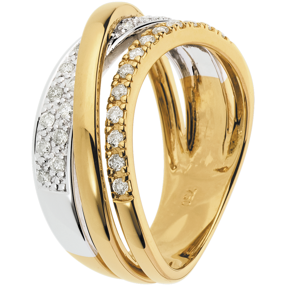Două inele de aur galben şi aur alb pavate cu diamante asortate unui inel de aur galben pentru o luxuoasă călătorie spre Saturn.