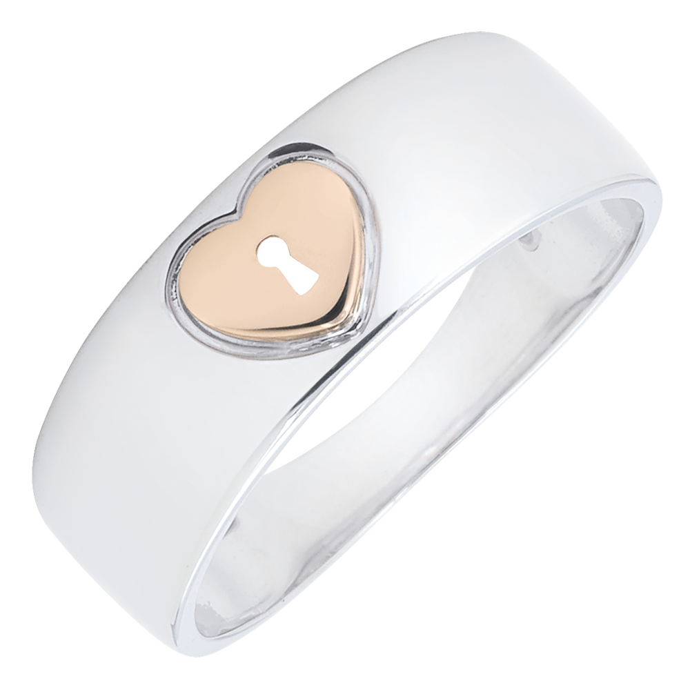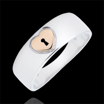 Inel Secret Preţios - Inimă - aur alb şi aur roz de 18K