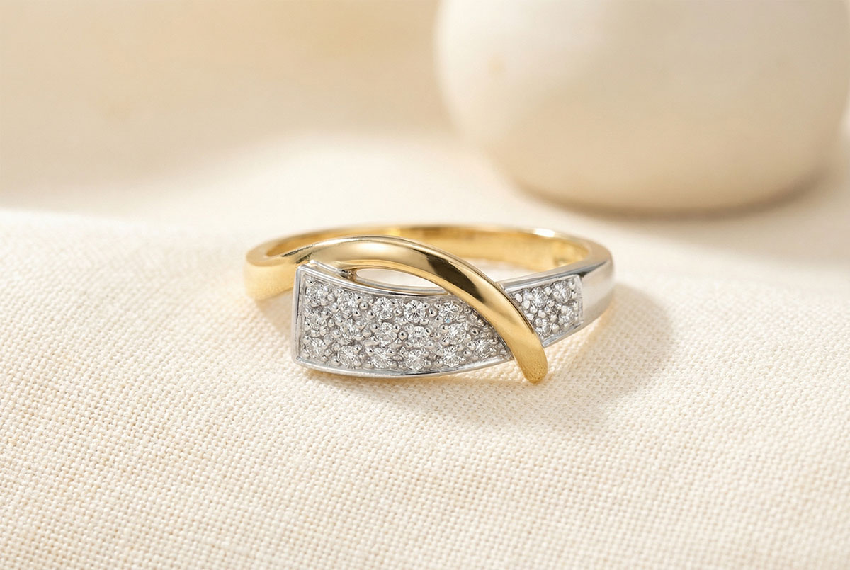 Inel Sirenă pavat - 20 diamante - aur alb şi aur galben de 18K