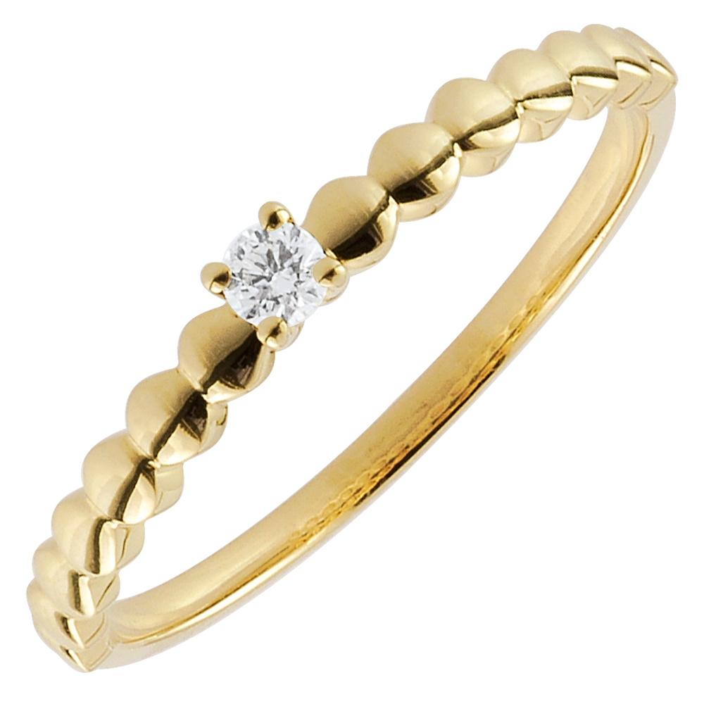 O montură din aur galben asemănătoare bomboanelelor ce ţine un diamant solitaire încrustat cu 4 gheruţe. Un inel de logodnă original şi feminin.